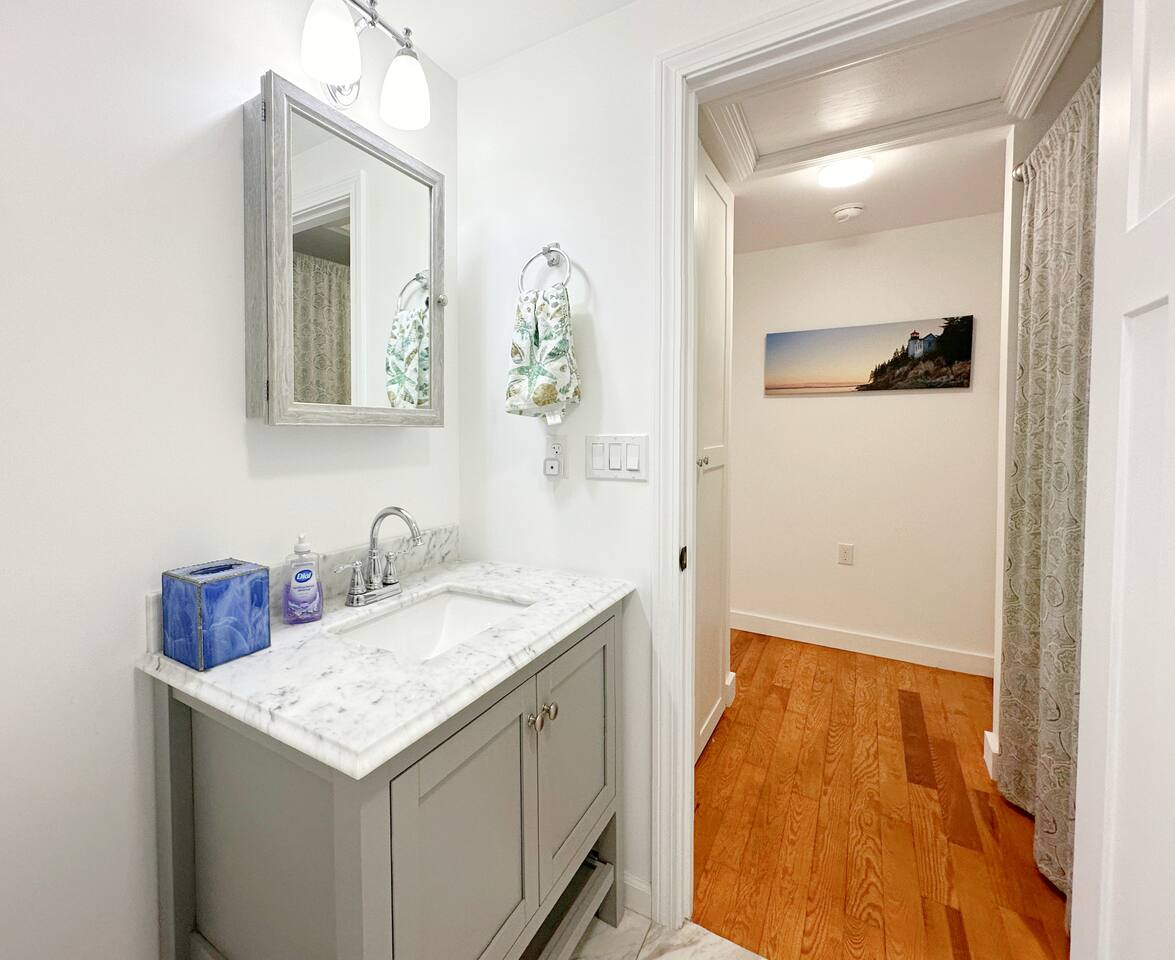Relax by yourself or bring your Besty. This peaceful beach bungalow for 2 is across the street from Wallis Sands Beach with ocean views. Enjoy the beach during the day and listen to the waves roll in at night. Just a short drive to the quaint town of Portsmouth, NH. Note: This property consists of 2 units; the Bungalow is private and has it's own entrance in the back. All guests must be at least 25 years of age. *Winter Rental available January - May*