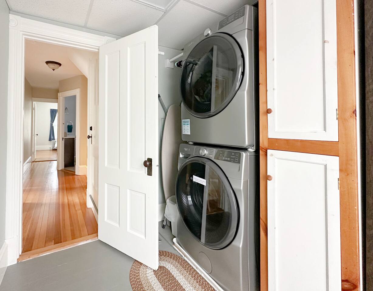 This beautiful historic home in the heart of Kittery has been updated and renovated in all the right places. There is a dedicated desk and working space in the lower level den area just off the kitchen as well as a full size couch and smart TV and free WIFI. A perfect spot to get things done when you're away from your office. The kitchen is fully equipped with all the utensils, pots, pans, dishes, glasses, coffee maker and more for your cooking enjoyment. The refrigerator has an ice maker on the door and a dishwasher and electric range complete the necessary amenities for the modern kitchen. The dining room will comfortably seat 6. The first floor also has a full bath with stand-up shower and a family room to kick back and relax with a good book or TV. The upstairs offers 3 bedrooms and a dedicated laundry room. Bedroom 1 is furnished with a queen bed, dresser and full closet for clothes. Bedroom 2 also has a queen bed, dresser and closet. Bedroom 3 has 2 twin beds and a closet. There is also a full size bath with tub/shower combination. Enjoy the beautiful fenced in grounds and gardens and dine outside on the patio which is set up for outdoor BBQ's.